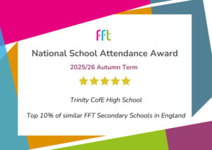 Something else to be proud of is that we have been recognised again for our excellent attendance. In the Autumn term, despite unprecedented levels of absence due to illness across the city, Trinity has received two FFT national awards in recognition of our high attendance levels. Well done to all of our students who endeavour to attend each day, and to all of our parents and carers who support us with this.