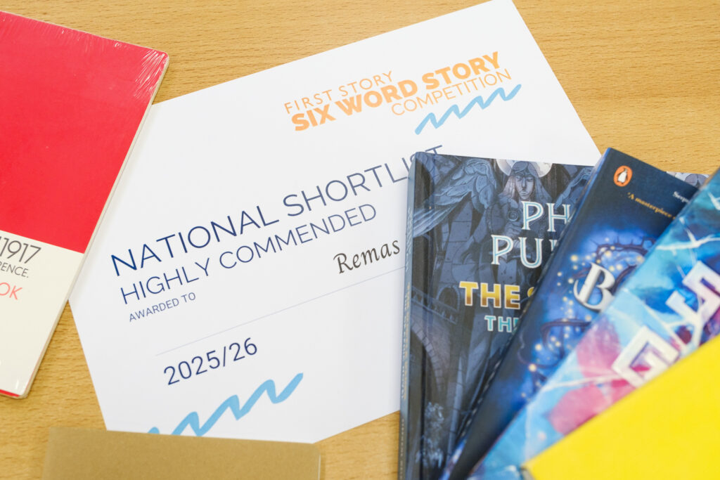 “Earlier this year, Trinity students had the opportunity to enter a national six word story competition. The judges at Penguin awarded Year 10 student Remas’s story Highly Commended and she’s received a box of lovely books and writing supplies as a prize. Congratulations, Remas!”